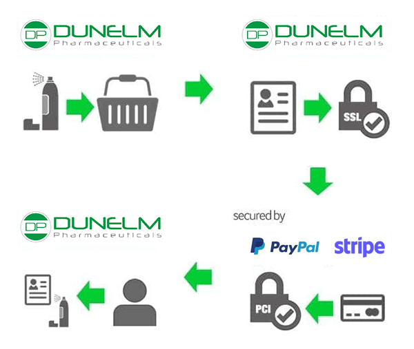 After your transaction has been processed on Paypal or Stripe servers you will be returned to www.dunelmpharmaceuticals.ie where you can manage your orders if you have created a portal account with us.